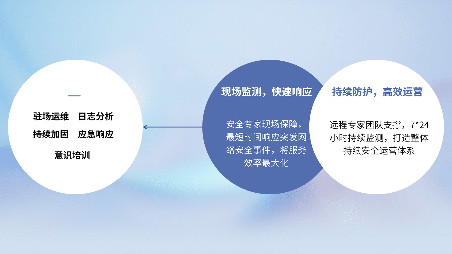 7X24小时持续监测安全事件,保持安全策略有效性,降低资产脆弱性风险,,,,精准拦截黑客攻击,,,,减少被黑客利用的机会,,第一时间遏制,,降低损失。。。。